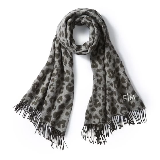 Made in Italy from super soft fabric, the versatility of this luxurious scarf is sure to make it a wardrobe staple. With a yarn-dyed animal print finished with tasseled edges, this scarf is oversized for maximum coziness so you can use it as a travel wrap on flights, as a blanket around the house or styled as a shawl. Always our favorite gift to give, add a personal touch by choosing from hundreds of beautiful monogramming options.