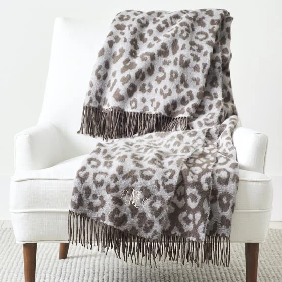 A super soft layer to love all year long, our most popular throw blanket now comes in a fun leopard print design. Made in Tuscany, Italy from a super-soft and insulating fabric, it features a yarn-dyed design finished with tasseled edges. The “please touch” texture was made for lounging, and the fringed tassels and a beautifully embroidered monogram add classic style. The Leopard Print Throw makes an easy gift anyone would love.