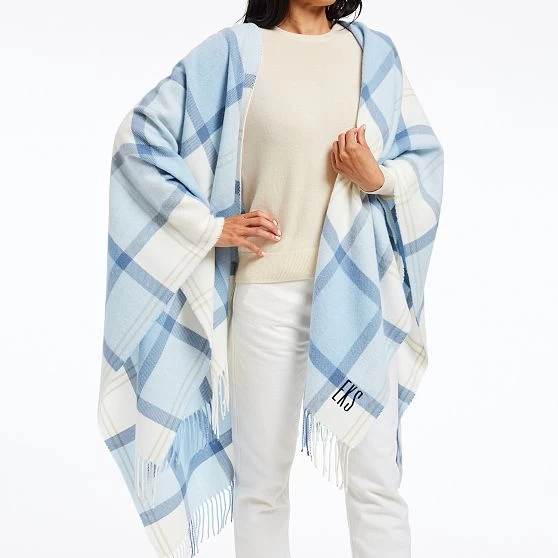 Our bestselling Italian plaid is now easier to wear than ever. Designed to drape over your shoulders to leave your arms free, the wrap is open at the front and edged with fringe on both hems. Use it as a travel wrap for winter getaways or as an extra layer around the house on chilly days. Add a monogram to make it an extra thoughtful gift.