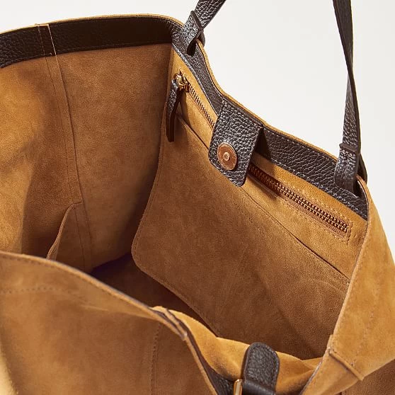 Meet our new everyday tote in stunning Italian suede. Handmade in Turkey, this relaxed tote is crafted from beautifully soft vegetable-tanned Italian suede that elevates this classic carryall design into a daily essential that is effortlessly stylish. The tote features an adjustable crossbody strap, a magnetic snap closure and two interior pockets. The adjustable crossbody strap can be swapped out for over 15 different colorful straps to match your mood, your outfit, or the seasons. Add a foil monogram to make it yours.