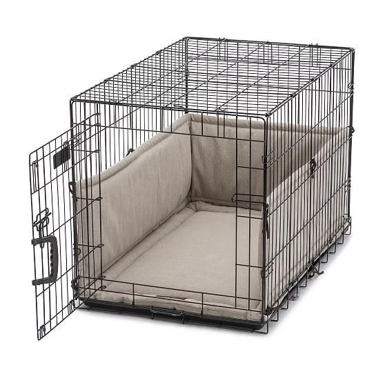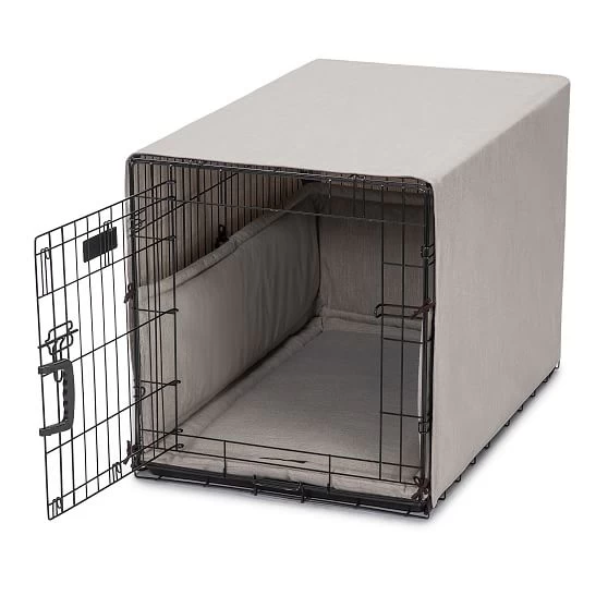 Soft, durable and machine washable, the Jax & Bones Crate Cover Up Set is the ultimate in comfort for your pet’s crate. The cool-to-the-touch textured linen fabric is designed for breathability and durability and is perfect year-round for warmer climates. Each set is custom made one at a time using ethically sourced materials. Set includes a stylish outer cover, a 3" thick washable crate pad and a three-sided 1" bumper for the inside of the crate.