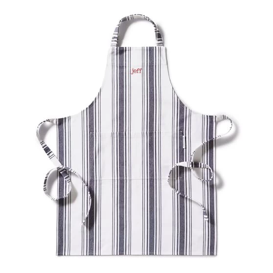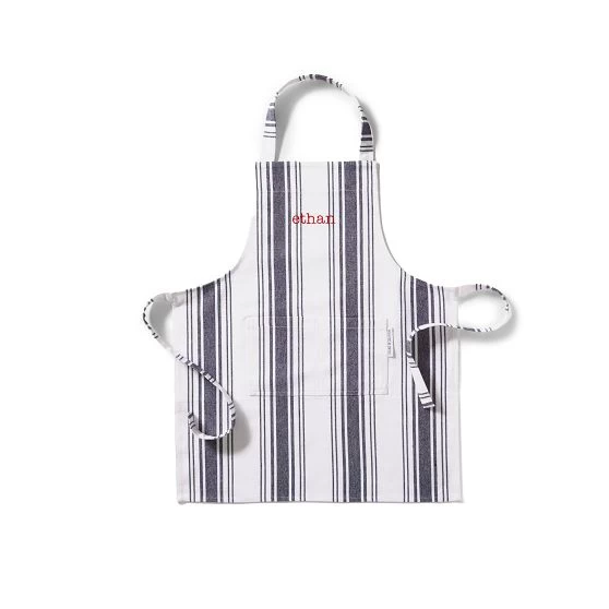 In a classic stripe pattern, our French Stripe Apron is the perfect gift for the little chef in your life. The yarn-dyed cotton offers great durability, easy care and protection from splashes and spills in the kitchen or during arts-and-crafts projects while the d-ring and Velcro closures at the neck make adjusting a cinch. The apron features roomy double front pockets to hold your kitchen tools and custom embroidery so you can add a personal touch.