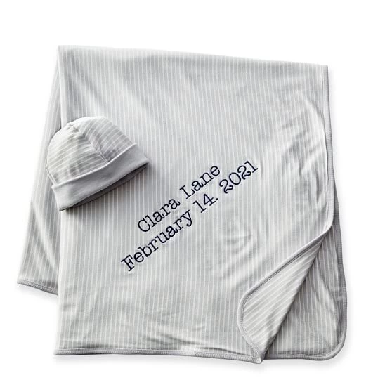 Designed to bring baby home in warmth and comfort, this adorable gift set includes a knitted hat and a cozy blanket that can be embroidered with a monogram for an extra special touch. Woven from a soft blend of bamboo-viscose fabric, this plush set is hypoallergenic and silky-soft on baby’s skin so you can rest assured that your little one will enjoy nothing but plush perfection.
