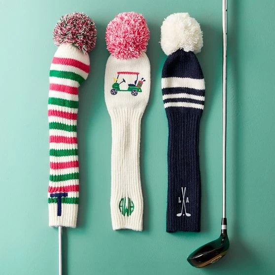 Add personality to your golf bag with these vintage-inspired club headcovers. Knit in bright colors and bold designs with a pom pom for an extra pop of style. Add a personal touch with a classic monogram.