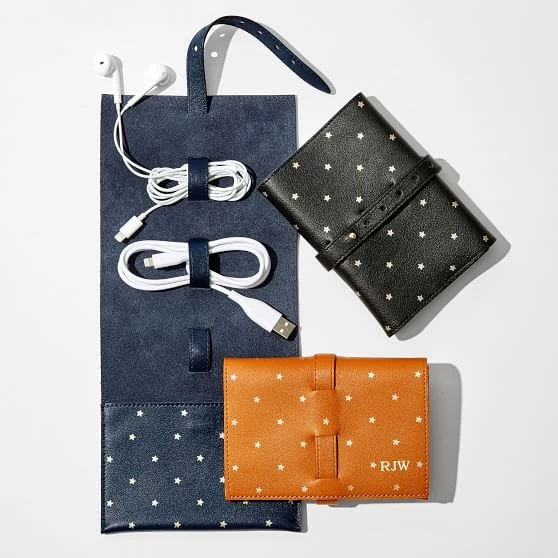 Give the gift of organization with with our new Leather Charger Roll Up Pro. Now in fun new holiday patterns with a new belted design that allows you to fit multiple cables and cords, this soft leather organizer will keep your favorite tech in its place from your desk to your favorite tote.