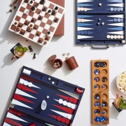We’ve given this classic game a luxe upgrade in leather. The pieces store neatly in a folding case with brass hardware, and the leather handle makes transport easy so you can so you can gambit on the go. Whether for display or play, it’s perfect for monogramming to add some personal flair.