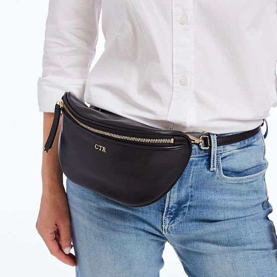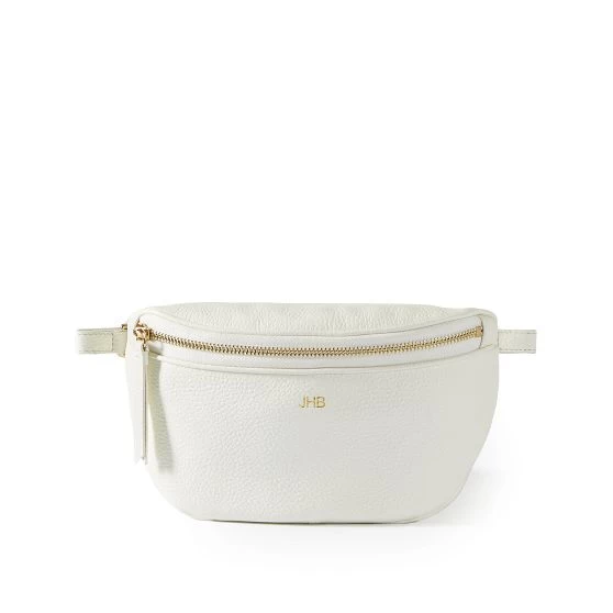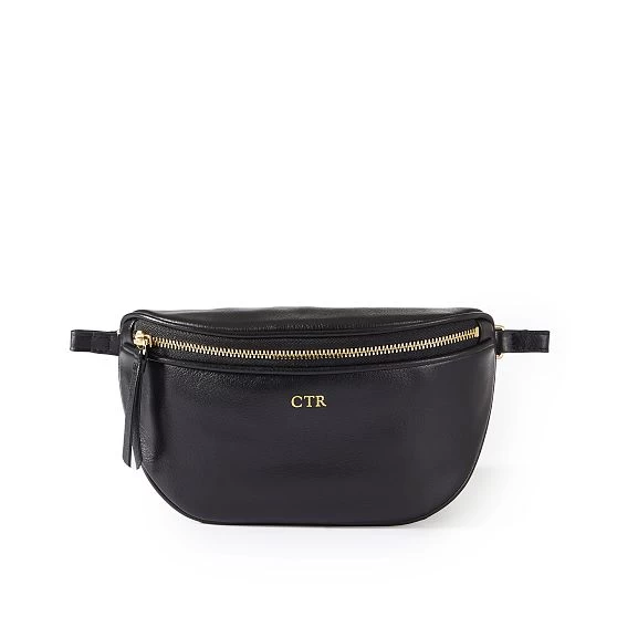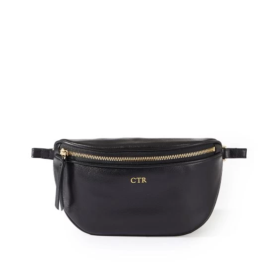 Convenience meets covetable design with this sleek sling bag. Crafted from premium leather, it features an organic curved silhouette that rests comfortably across the chest. Features a zipper closure and an adjustable leather strap. A foil monogram adds a personal touch to the design.