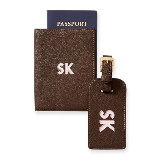 Made from pebbled leather in a range of colorful options, the gift set includes a case to keep a passport and visa documents safe and a matching luggage tag for their suitcase. Add initials in a colorful shadow printed monogram to make a thoughtful gift they will love to use every time they travel.