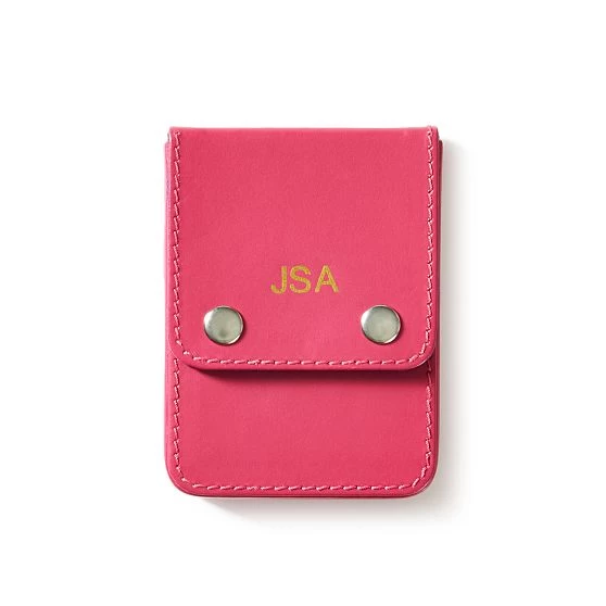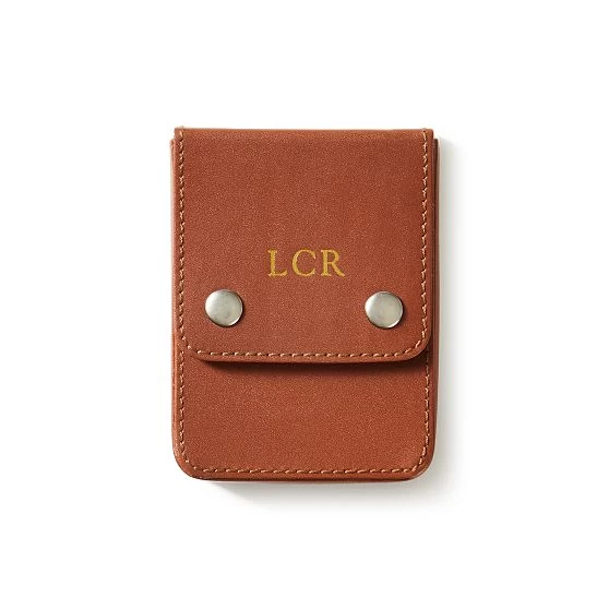 A great gift for your poker playing pals, this classic leather card case snaps shut to keep your cards stowed. Perfect for gaming on the go, you can add a custom monogram for an extra personal touch. Pair with other favorites from our leather gaming collection.