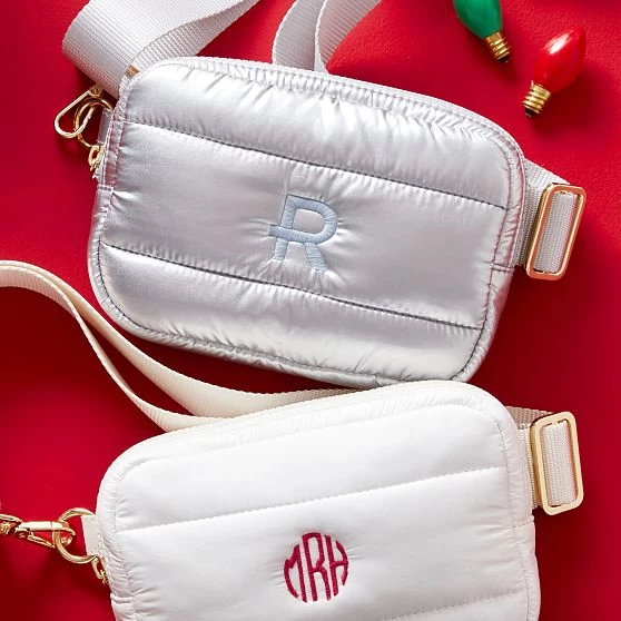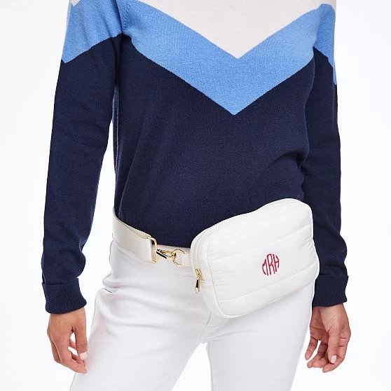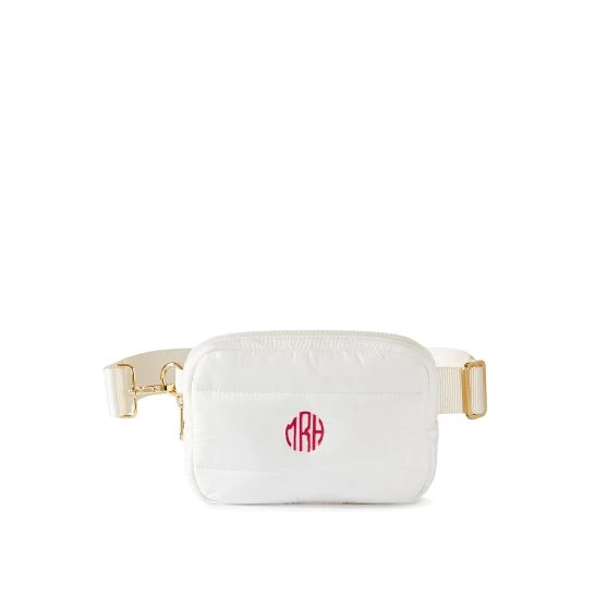 Go hands free in plush style with this outerwear-inspired quilted belt bag. Wear it at your hip or across your chest for a lightweight accessory that keeps all your essentials close. Made from soft yet durable polyester, it features an adjustable strap and high quality gold hardware. Add a monogram to make yours stand out from everyone else’s.