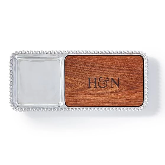 Crafted from recycled aluminum with beautiful pearl detailing and sustainably harvested Caribbean walnut wood, these beautiful cheese board make stunning gifts for anyone who loves to entertain. The wood insert is removable for easy cleaning and can be engraved with a monogram for a personal touch.