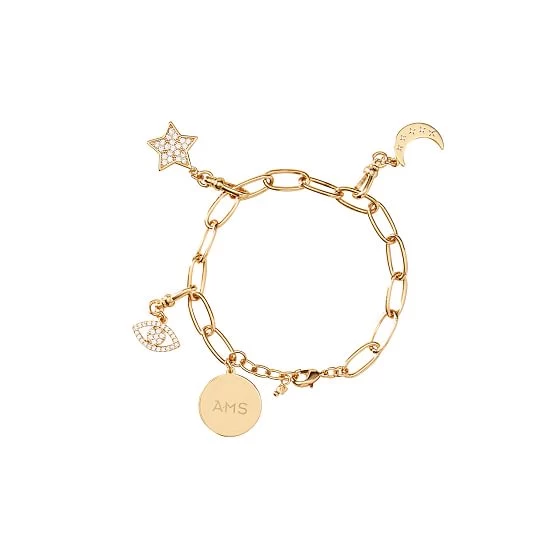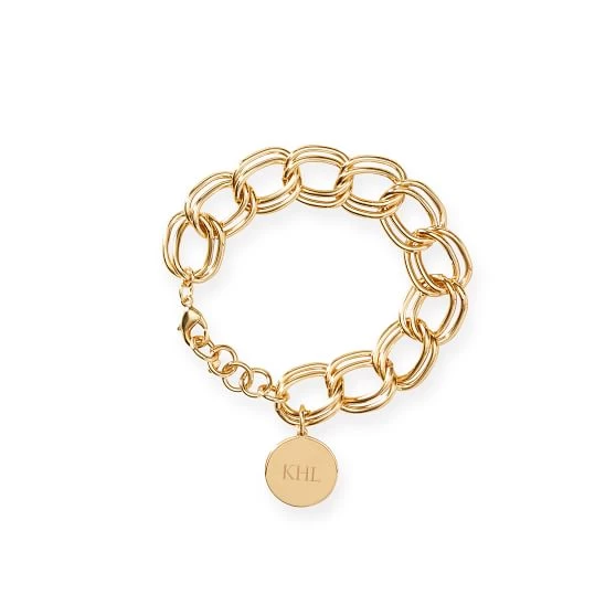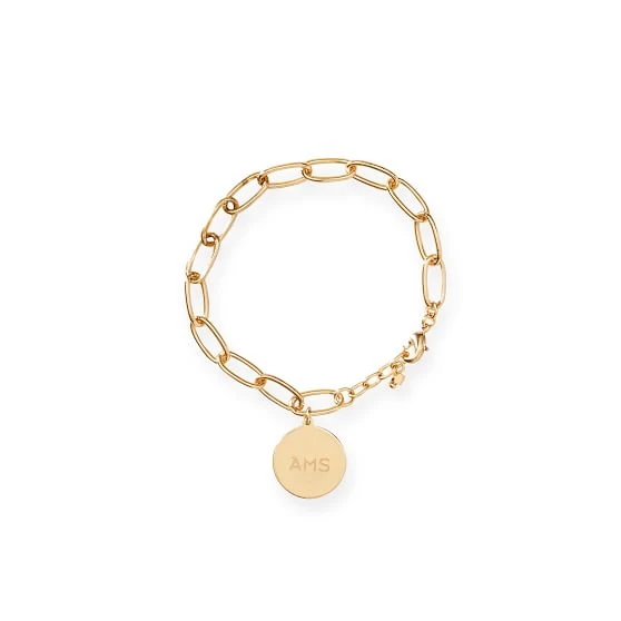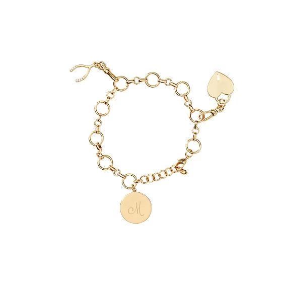 • Bracelet comes with a gold chain and an engravable gold disc charm. Additional charms sold separately.