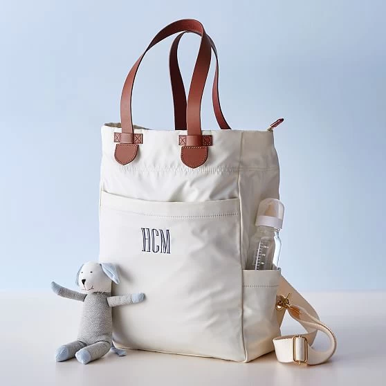 The Maddie Convertible Backpack has a place for everything you could possibly need on a day out with your little one. From diapers, bottles and changing pads, to your laptop, and an extra sweater, this versatile bag has a pocket for everything. The clever design features convertible leather straps you can position as a handbag or a backpack, making it the perfect choice when you need to stay hands-free. With a durable nylon exterior and a wipeable lining, this diaper bag is both stylish and practical. Simply add an embroidered monogram to make it yours.