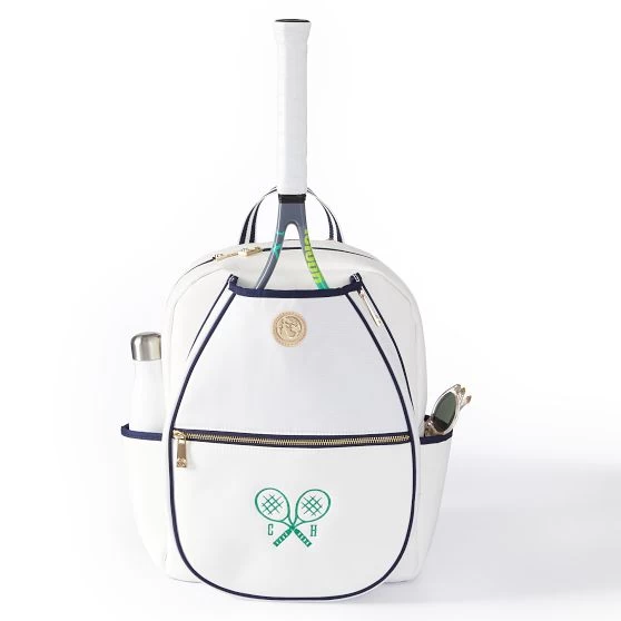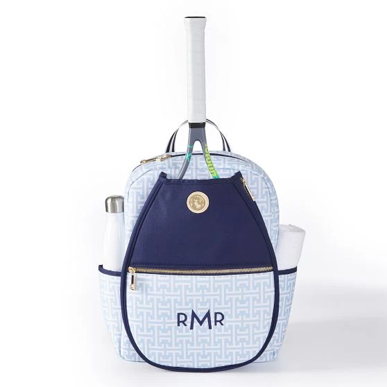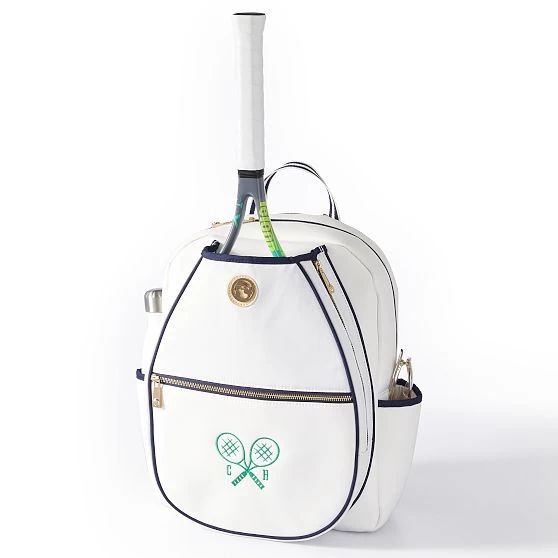 Upgrade your courtside kit with this sleek tennis backpack, designed in collaboration with Spartina in exclusive colors and patterns. More than just a style statement, it is lightweight yet durable and packed with functional features. The large front pocket has room for up to two rackets and the side pockets are perfectly sized for your water bottle or tennis ball cans. As attractive as it is hardworking, the backpack is constructed from durable weather and tear-resistant nylon to stand up to heavy use. Makes a winning gift for your doubles partner or any other tennis lover in your life. Add a classic embroidered monogram for a personal touch.