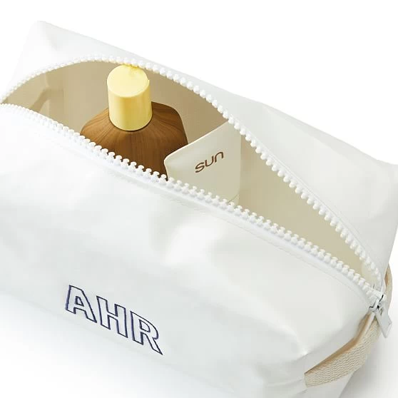 Steele quality and durability made mini. This travel pouch is thoughtfully made from water and tear-resistant vinyl for everyday durability. Perfect for storing makeup and other essentials, it’s the ultimate all-purpose pouch that’s sized just right. Embroider with a custom monogram for the perfect personalized gift.