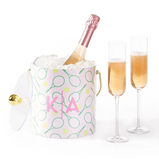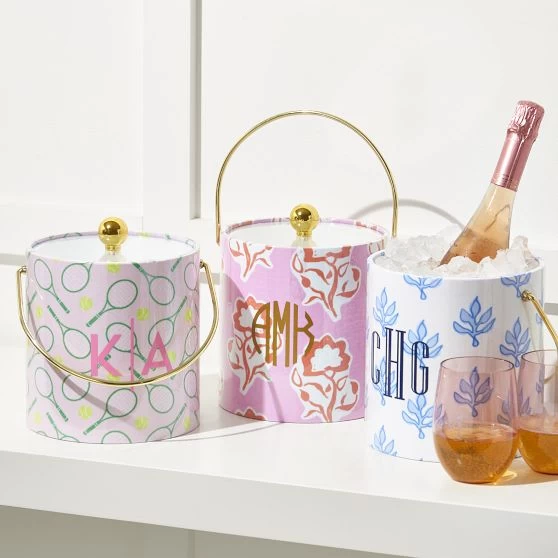 Keep drinks cool in style with this unique ice bucket, wrapped in fabric featuring fun prints that are sure to elevate any cocktail party. Perfect for aperitifs on the patio or al fresco dining, the bucket is double-walled for insulation, with a plastic insert and glossy wipeable exterior to make cleaning a breeze. Add a monogram to make it a thoughtful gift for your favorite host.