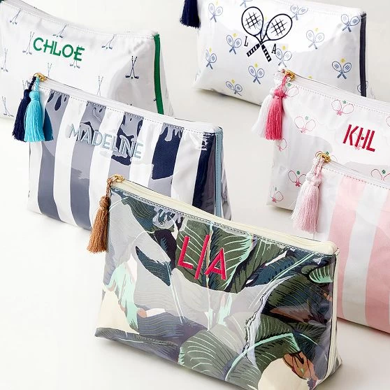 Featuring the iconic Martinique® banana leaf print that also graces the walls of the Beverly Hills Hotel, this canvas travel pouch is clad in a glossy wipeable coating inside and out for worry-free cosmetic and toiletry storage. Available in two sizes to fit your needs, pair it with the Martinique® Banana Leaf Travel Case for an eye-catching set. A great gift for birthdays, bridesmaids, Mother’s Day and more. Add your own touch to the design with a name or custom monogram.