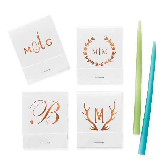 Get matchy matchy with your matchbooks – a fiery way to celebrate a wedding, graduation or significant birthday, these sets can feature names, a graphic or monogram. Each book includes 20 matches.