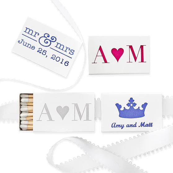 Get matchy matchy with your matchboxes – a fiery way to celebrate a wedding, graduation or significant birthday, these sets can feature names, a graphic, short phrase or monogram. Each box includes 20 matches.