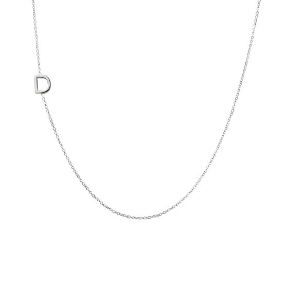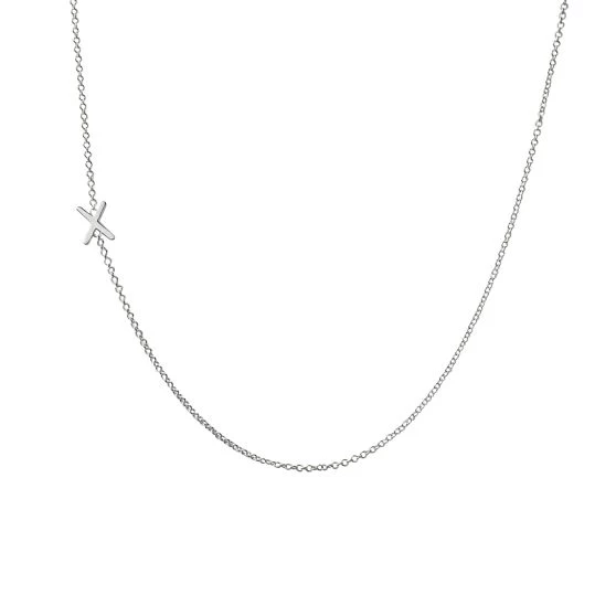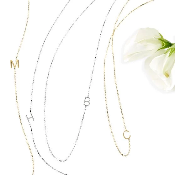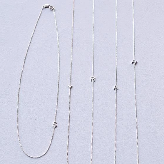 A favorite of celebrity style icons, Maya Brenner has become famous for her distinctive personalized pieces, designed at her studio in Los Angeles. This delicate necklace makes your mark with a single sans serif initial, set slightly off to the side, on a super fine cable chain in 14k gold or sterling silver.