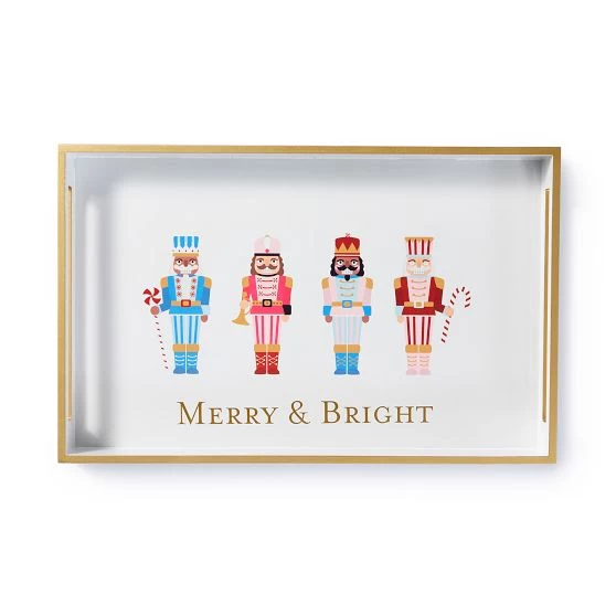 Crafted from sustainably sourced wood with a high-gloss lacquer finish and a nostalgic nutcracker theme and gold trim, this festive serving tray is designed for entertaining with open sided handles for easy carrying. Whether it’s styled on your coffee table or dresser, organizing your home bar or serving drinks at happy hour, this versatile tray makes a thoughtful gift with hundreds of custom monogramming options.