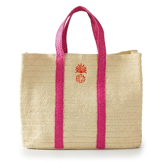 An easy tote that adds effortless style to the warmest of days. Handwoven from straw this versatile bag features long carry handles for easy toting and an embroidered monogram for a personal touch.