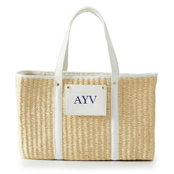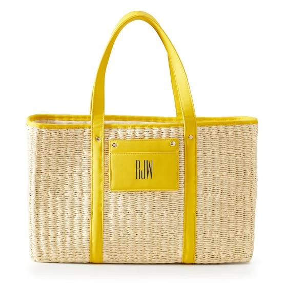 A dreamy tote perfect for picnics in the park, farmer’s market strolls and weekend trips to the beach – or your backyard! This spring-ready tote is woven from soft natural straw with faux leather trims and a handy detachable case for easy access to all your essential cards. Add a classic foil monogram to the removable card case for a personal touch.