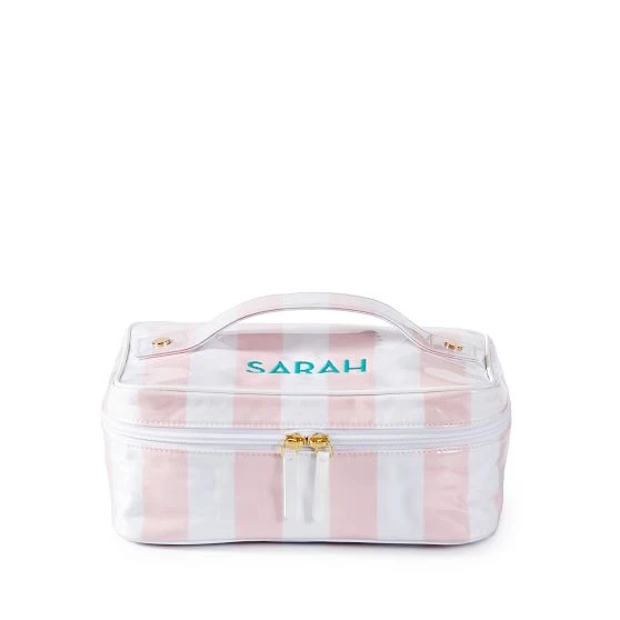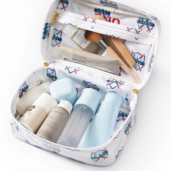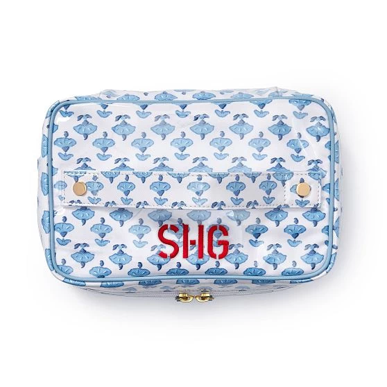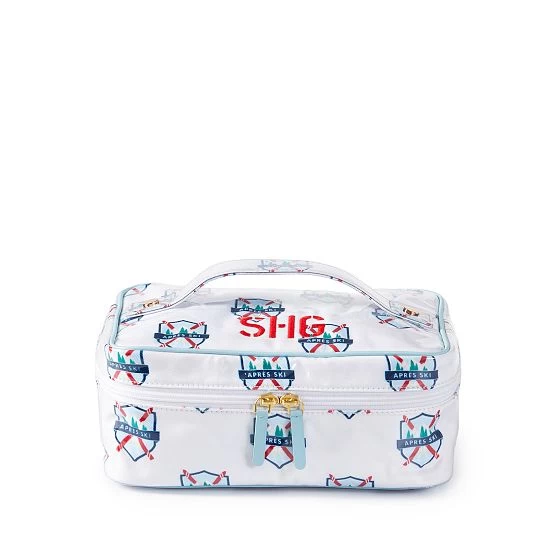 Featuring playful prints inspired by favorite pastimes and destinations, this travel case is a stylish way to keep your cosmetics organized on the go. A glossy wipeable coating inside and out makes it super easy to clean. Opens wide for convenient access, with a zipper pouch in the top for smaller items like brushes and mascara. Add a name or a monogram for a thoughtful gift.
