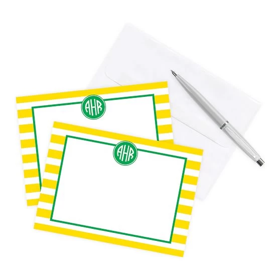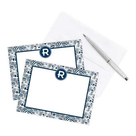 A beautiful choice for personalized stationery, these flat notecards are perfect for writing your thank-you notes no matter the occasion. Designed by local artists, these colorful sets of 25 patterned cards feature a digitally printed monogram for a personal touch. White envelopes included.