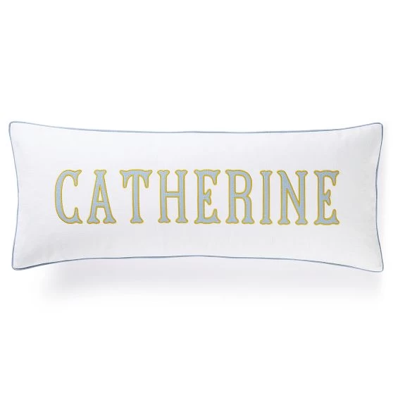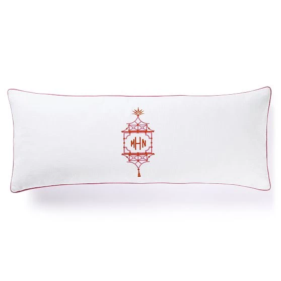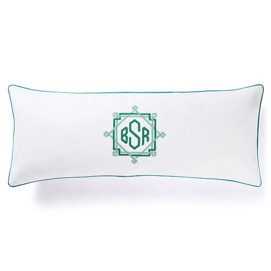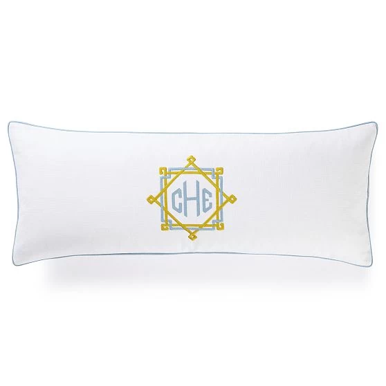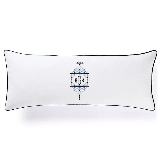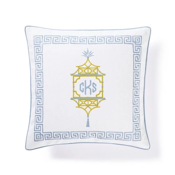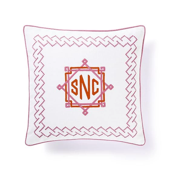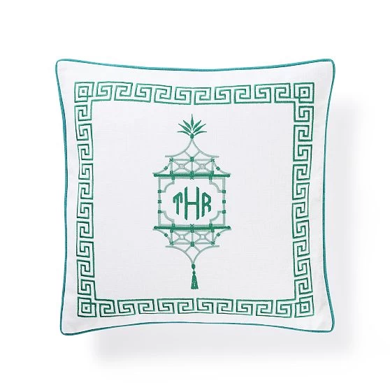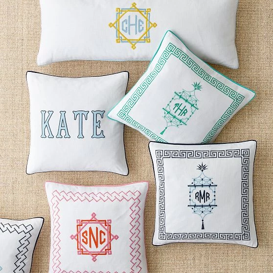 Classic and clean, these made-to-order pillows add an elegant bespoke touch to any space. Inspired by crisp yet ornate chinoiserie décor, the pillows feature your choice of an embroidered name or an intricate monogram, framed with color coordinated piping. The perfect accent pillow for celebrating milestones such as new babies, housewarmings, or graduates getting ready to decorate their dorm room.