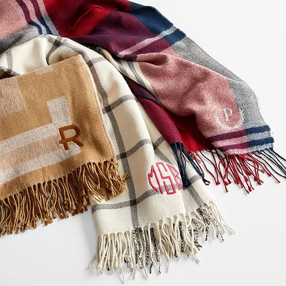 Made in Italy from super soft fabric, the versatility of this luxurious scarf is sure to make it a wardrobe staple. Finished with tasseled edges and oversized for maximum coziness, use it as a travel wrap on flights, as a blanket around the house or styled as a scarf or shawl. Add a personal touch to this perfect gift by choosing from hundreds of beautiful monogramming options.