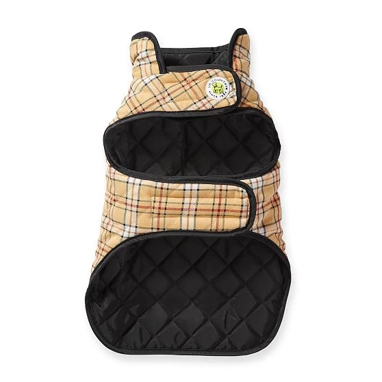 Keep your dog warm and cozy all season long with the Plaid Reversible Dog Coat. Made from soft cotton with a festive plaid print, the coat’s fleece lining will ensure constant comfort and warmth so you can enjoy outdoor walks with your dog all year round. Hook and loop fasteners ensure a snug and comfortable fit, while the harness patch allows you to easily attach your dog’s leash. Add an embroidered monogram for a personalized touch.