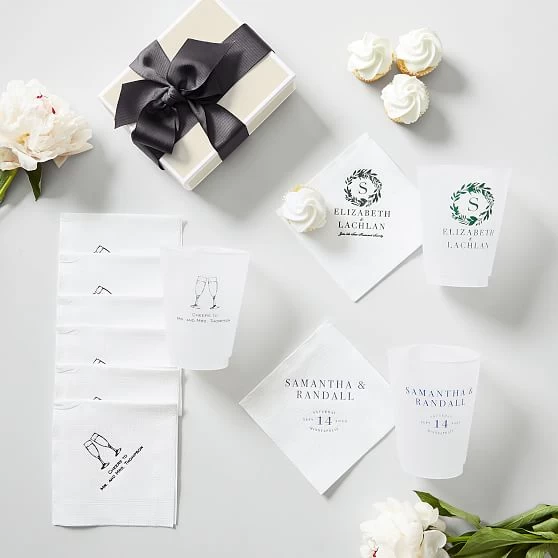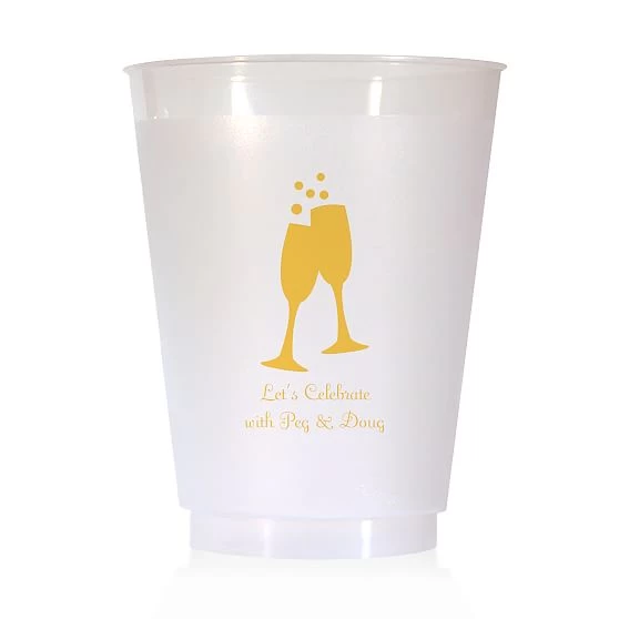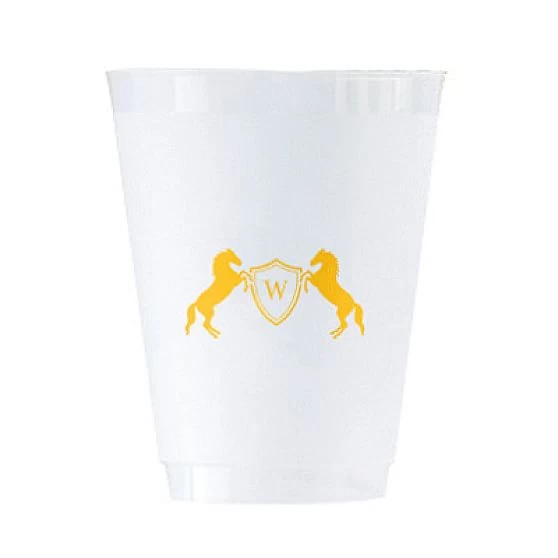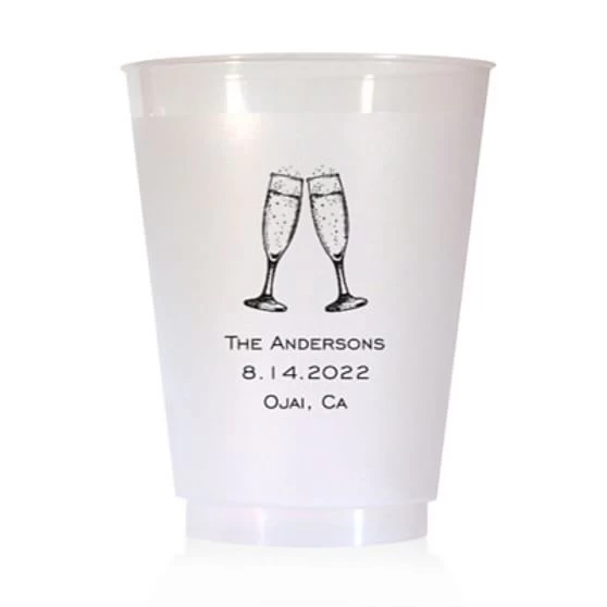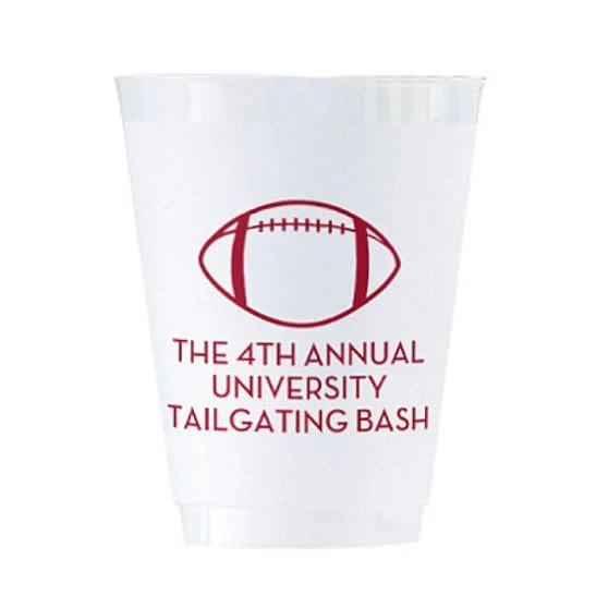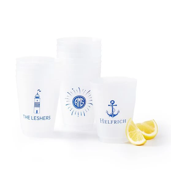Shatterproof plastic cups that are perfect for celebrations and everyday sipping alike! These reusable frosted plastic cups are great for backyard entertaining, tailgating, picnics in the park or wedding parties. The digitally printed monogram can be coordinated with our paper coasters and linens, for coolly coordinated entertaining.