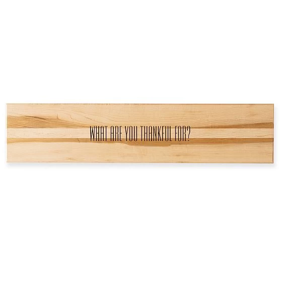 An attitude of gratitude: the warmth and durability of solid maple wood make the perfect platform for creating Thanksgiving Day conversation. At three feet long, it makes a showstopping statement, the perfect ice breaker for those big meals with friends and family, and the perfect platform for serving up delicious treats. Made by J.K. Adams – for more than 65 years, they’ve been handcrafting wood pieces in Vermont, using materials that are sustainably grown and harvested.