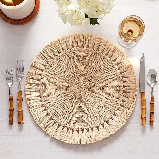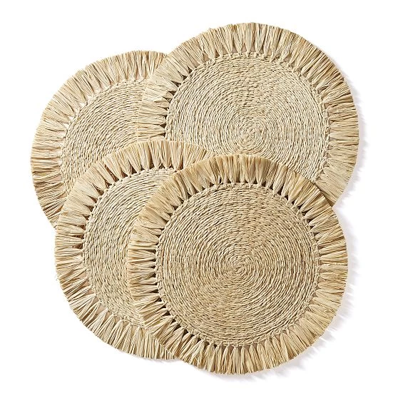 These woven placemats make elevated settings look effortless. Crafted from natural raffia, they’re durable for daily use while adding texture to any table. The neutral color is made to mix and match, and woven construction is outdoor-friendly and easy to clean. Layer with dinnerware and table linens to create memorable spreads for any meal.