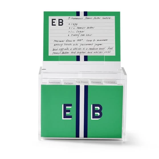 Whether they are family favorites that have been passed down for generations or creations all of your own, keep your most-loved recipes safe in this personalized recipe box. With a patterned design and shadow print monogram that is featured on the front of the acrylic box and on each recipe card, this recipe box comes with five tabbed dividers for easy organization and 48 lined cards for your favorite recipes. Gift it to your parents or grandparents to record their family recipes, or as a thoughtful gift for anyone who loves to cook.