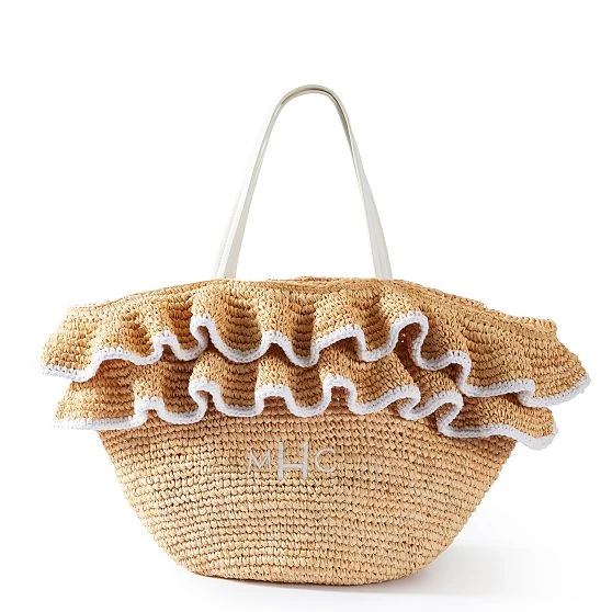 Make a style statement with this elevated take on a summer tote that has plenty of room for all your sightseeing essentials. Two layers of ruffles with contrasting trim add a feminine touch, while a vegan leather base and straps add function. Add a monogram to make it a one-of-a-kind gift.