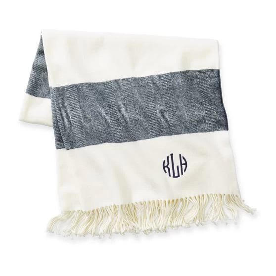 Relax in style and comfort with a super soft throw that makes you feel right at home. This cashmere-soft cotton-blend throw is crafted in Italy with a tonal herringbone weave, classic rugby stripes and a plush fringe. Add a beautifully embroidered monogram for a personal touch.