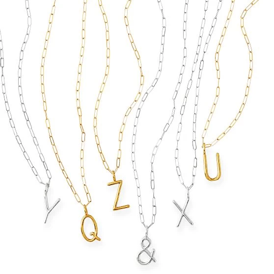 Design your own style statement: choose one or three initials, hung on a long chain, in sterling silver or gold plate. Made in New York from the highest-quality metals, Andi was designed by Zahava, whose Sarah Chloe line of jewelry has become a favorite among those who understand next-generation personalization.