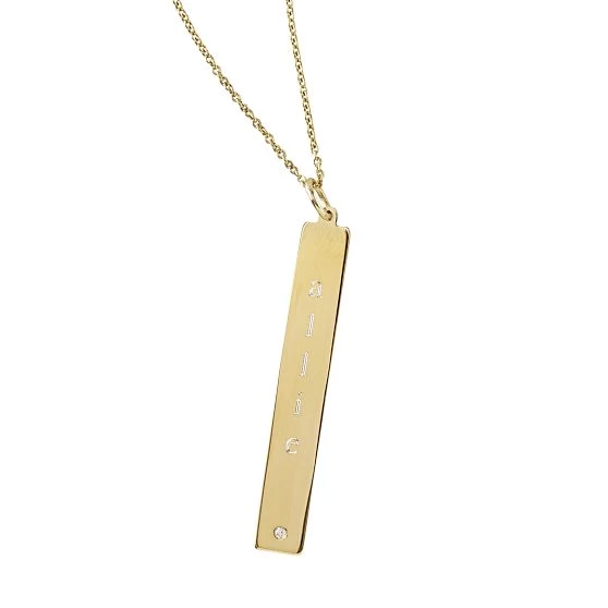 Sleek vertical style with a subtle touch of bling – add your name, a special date or a little “love.” Made in New York from the highest-quality metals, the Diamond Pendant Necklace was designed by Zahava, whose Sarah Chloe line of jewelry has become a favorite among those who understand next-generation personalization.