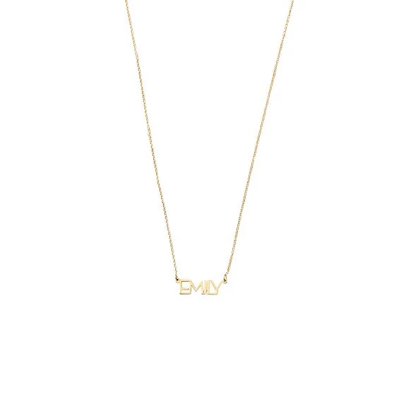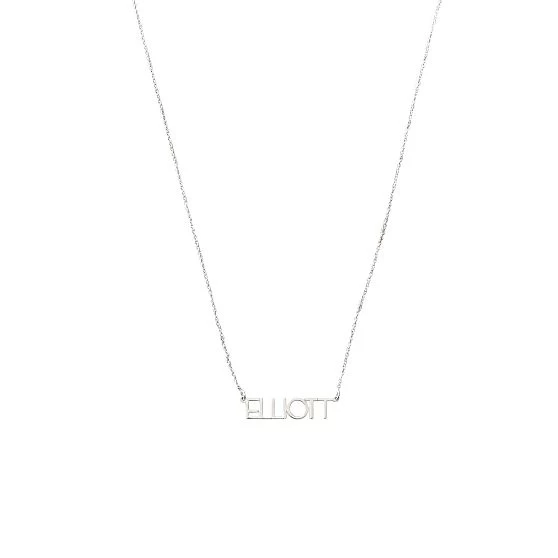 Evoke the clean lines of mid-century modern typography with this sleek take on a name necklace. Available in a choice of finishes, it makes a bold style statement. Made in New York from the highest-quality metals, designed by Zahava, whose Sarah Chloe line of jewelry has become a favorite among those who understand next-generation personalization.