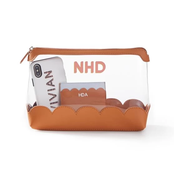 Clearly the best choice to keep your essentials stored. This handy zipper pouch lets you see inside so you’re never rummaging for that card at checkout. Throw it in a bag, use it as a clutch, or keep it on your vanity to store cosmetics. It’s made from water-resistant polyurethane and looks great monogrammed with a bold pop of their favorite color.