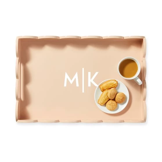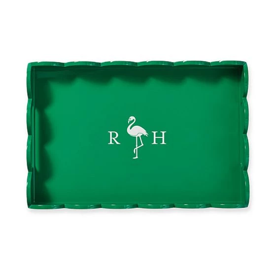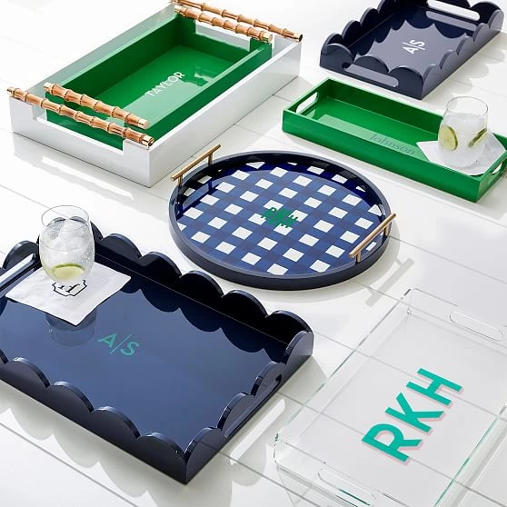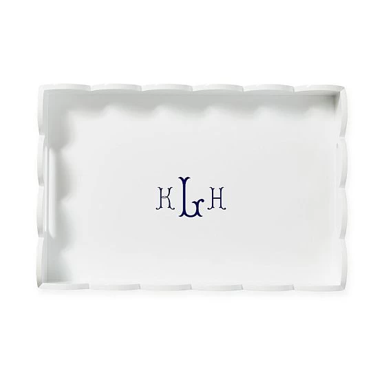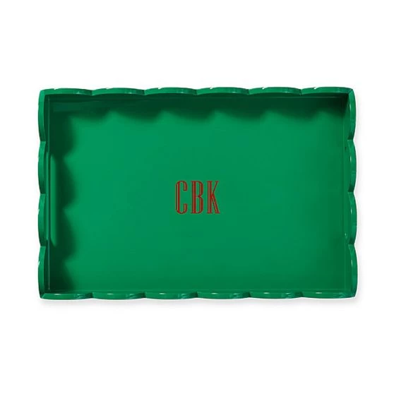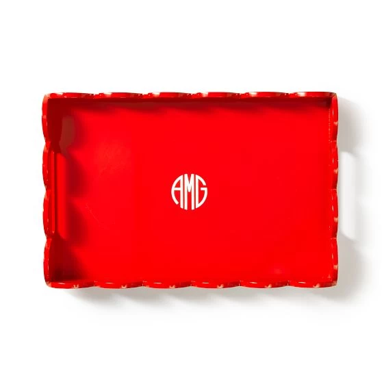 Beautifully scalloped edges with high gloss lacquer finish and sleek built-in handles – these are the design details that add beauty and depth to this versatile tray. Designed to sit beautifully on your bar cart, organize books on your coffee table or serve your favorite appetizers while you dine al fresco. Add a decal name or monogram for a personal touch.
