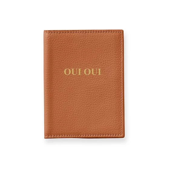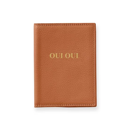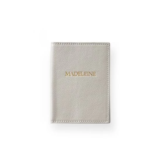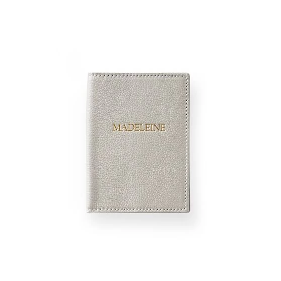 A thoughtful gift for the traveler, this passport case is the perfect way to store your passport safely. Crafted from leather that has a slightly pebbled finish, the case is available in three soft shades and features four tabs to secure your passport inside. Designed to be personalized with up to 14 letters or numbers, you can add a name, date or special message for a thoughtful touch.