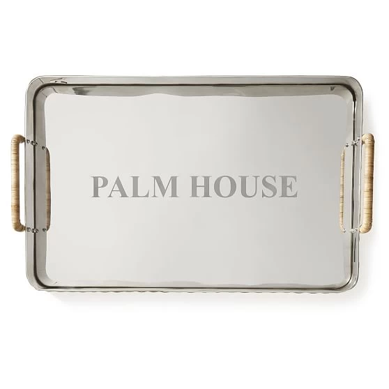 Stunning in silver. This set includes matching ice bucket and tray, both crafted from silver-plated stainless steel and wrapped with wicker for an elevated finishing touch. Inspired by vintage design and refreshed for the modern home, they make a luxe addition to any bar or entertaining spread. Add your choice of monogram and serve guests in streamlined style.