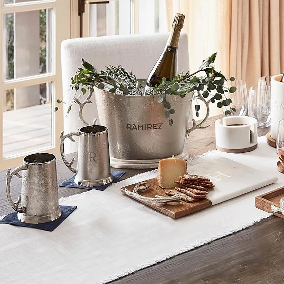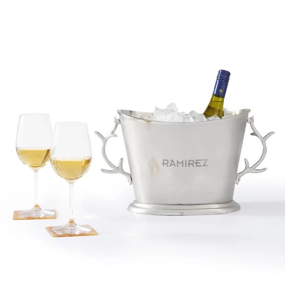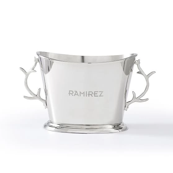 Keep the bottles chilled in stunning style with this celebration centerpiece. Featuring lifelike antler handles that complement the streamlined shape, this wine chiller exudes elevated rustic charm. Perfect for champagne, it’s generously sized to accommodate two bottles with ice. And don’t forget to commemorate the occasion with a custom engraved monogram or message.