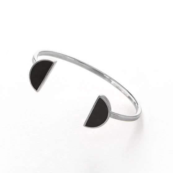 Designed by Soko, a Kenya-based company producing handmade designs that hint at the brand’s tribal origins, the adjustable Split Moon Cuff characteristically exudes a strong yet minimal aesthetic. A recycled brass band collides with a split-moon design that’s hand carved with recycled black cow horn to create a modern piece with cool intrigue.