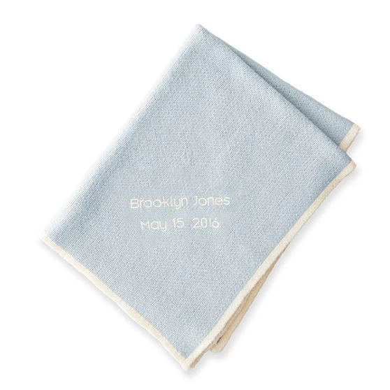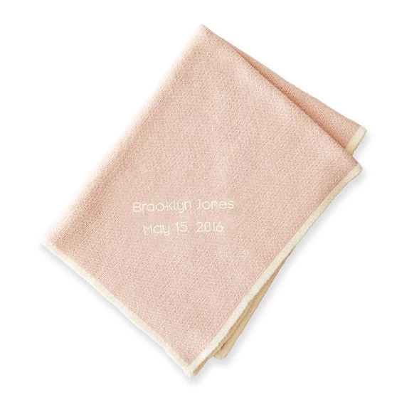 Pamper a new little bundle with this cozy, knit baby blanket, which is ready for stroller rides and napping alike. The ultra-soft staple can be personalized with a name, date, or saying for a luxurious one-of-a-kind gift that will match any kind of nursery theme.