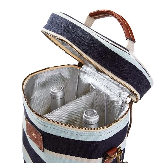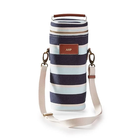 Carry your wine in style with the Sonoma Insulated Wine Tote. Crafted from cotton with an insulated wall inside to keep wine cool, the tote comes in single or double sizes with a leather carry handle and an adjustable shoulder strap. Add a foil debossed monogram for a personal touch to the perfect gift for the wine lover.