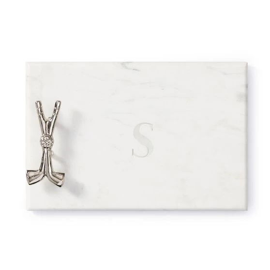 A champion of charcuterie and ace of appetizers, this classic marble cheese board features a sport-themed handle of your choice. Crafted from a rectangle of natural marble with a single aluminum handle. Makes a winning gift for any athlete or sports fan in your life, especially with the addition of a custom monogram.